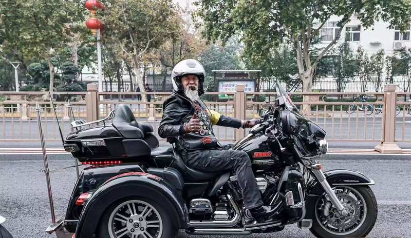 熟悉“機車老炮兒”張金成的人,都記得他那一把標志性的花白胡子。廣為流傳的照片里,他坐在重型機車上,頭戴安全帽,黑色的騎行馬甲上別著一排紀念章。